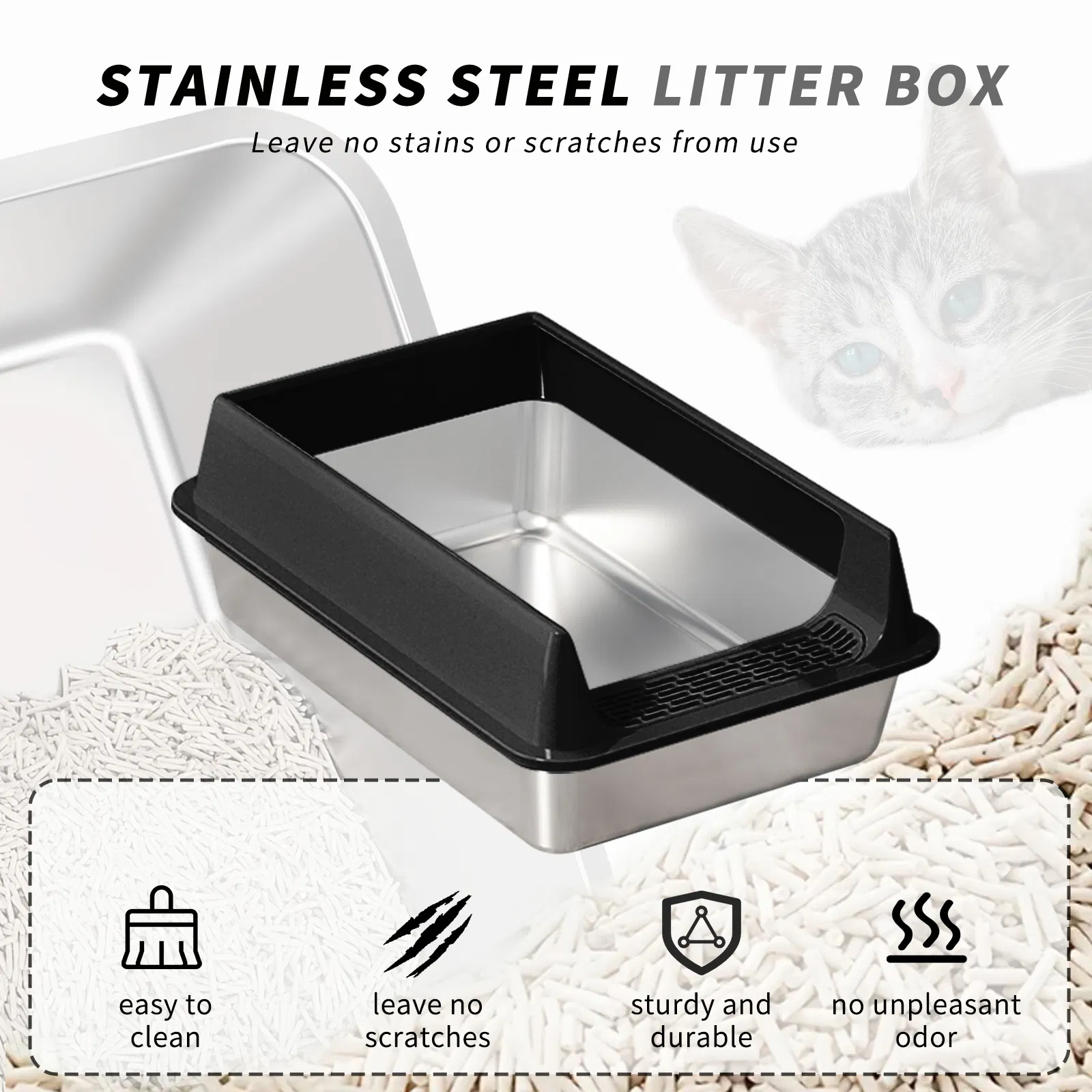 Stainless Steel Cat Litter Box - Non-Stick, Scratch Resistant, Easy To Clean, Odorless & Durable